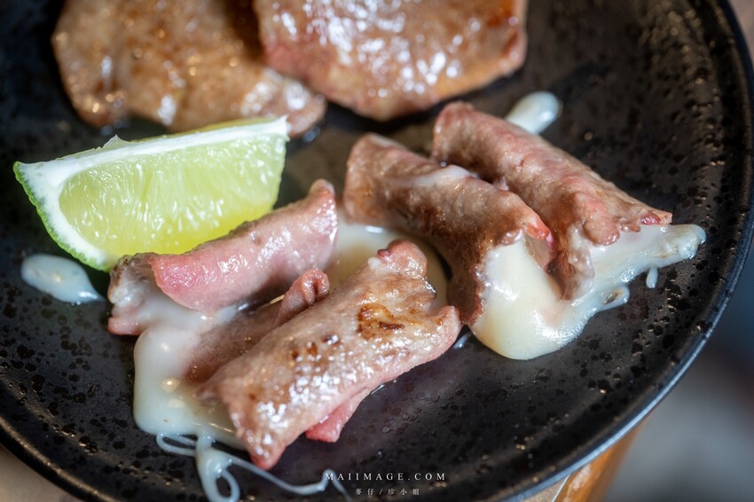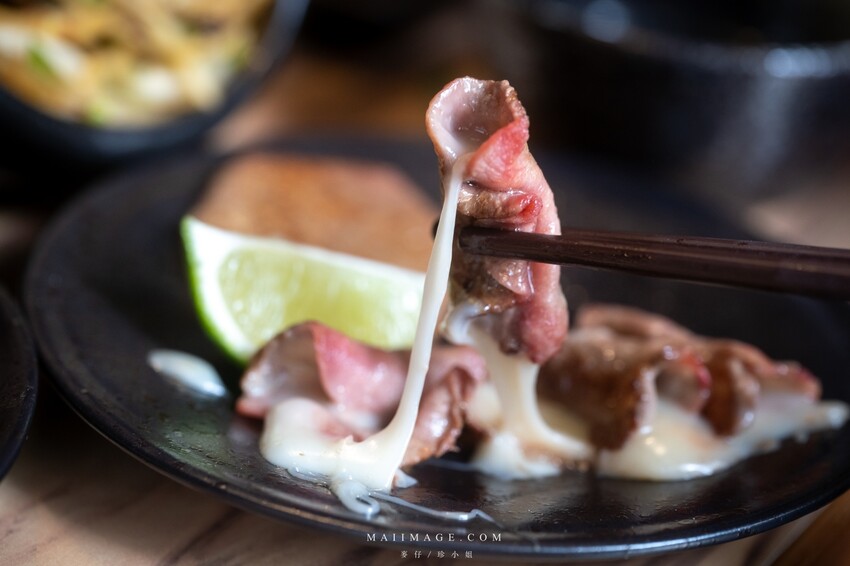 ▲牛舌包著軟化的起司這牽絲的畫面實在太誇張,牛舌特有的油脂香氣再加上起司的濃郁奶香,兩種香氣在嘴裡化開這真的太開心,這時心裡只想要老闆再來一盤。
