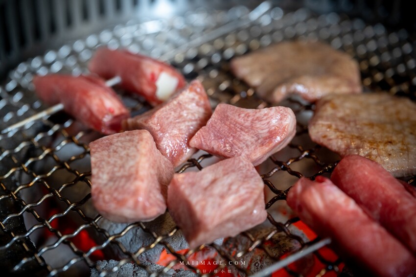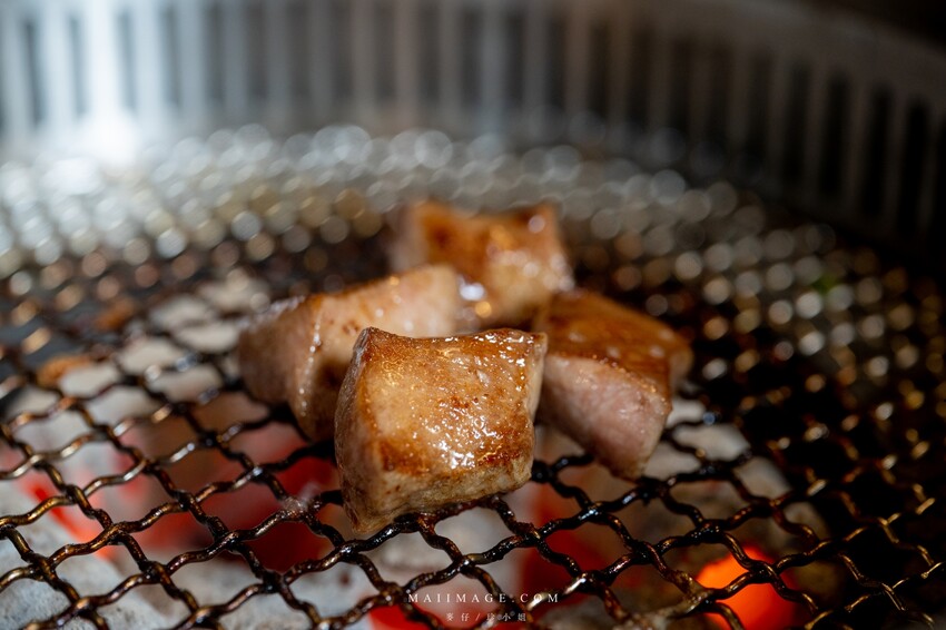 ▲厚切的骰子牛舌這個也是這拼盤裡面我超愛的品項,切成厚塊的牛舌熟度很重要,裡面要保持軟嫩外皮要帶點焦香,這個就考驗服務人員的功力了,如果是交給我烤那就太浪費好食材XDD。