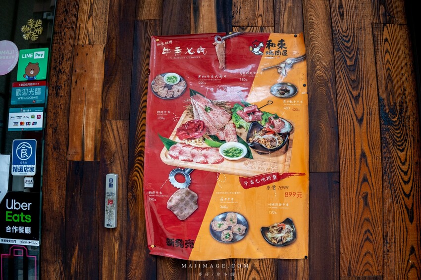 『和東燒肉屋』的位置在桃園的民有三街上,清水模配上黑白色的招牌配色相當舒服,大片的落地窗採光相當不錯。