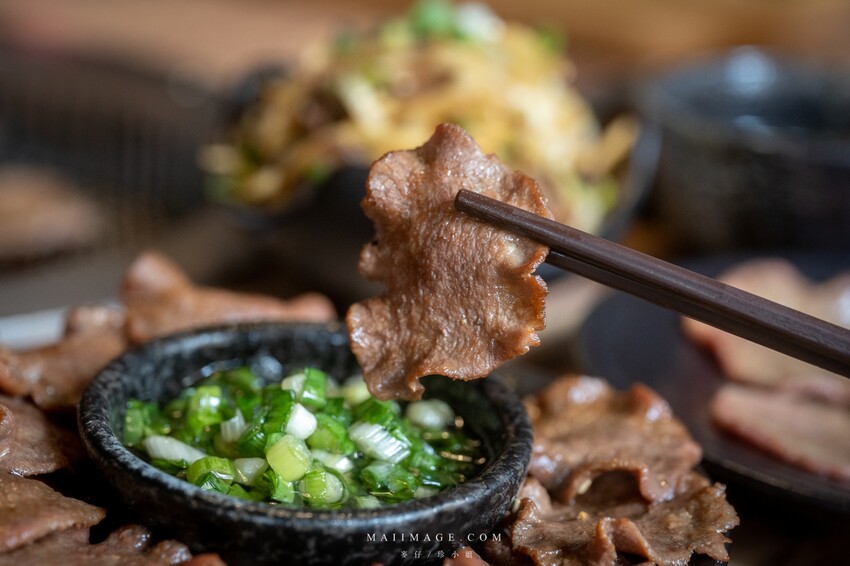 ▲稍微沾點鹽蔥趁熱吃,即使薄切也吃得出牛舌彈牙脆口的口感。