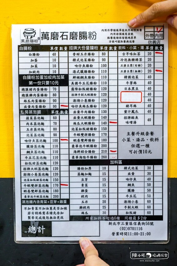 三重美食 萬磨石磨腸粉信義店 菜單價錢