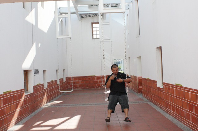 屋內設計的盪鞦韆讓拔拔忍不住的坐上去放鬆一下,以前的人