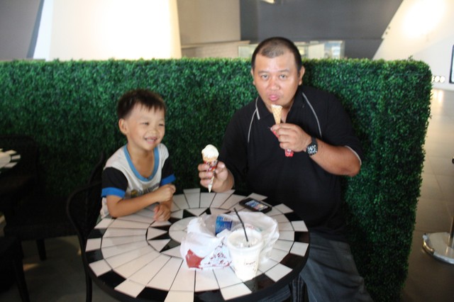 慣,所以被冰淇淋餵得飽飽的拔拔也只能苦哈哈的硬吃完。