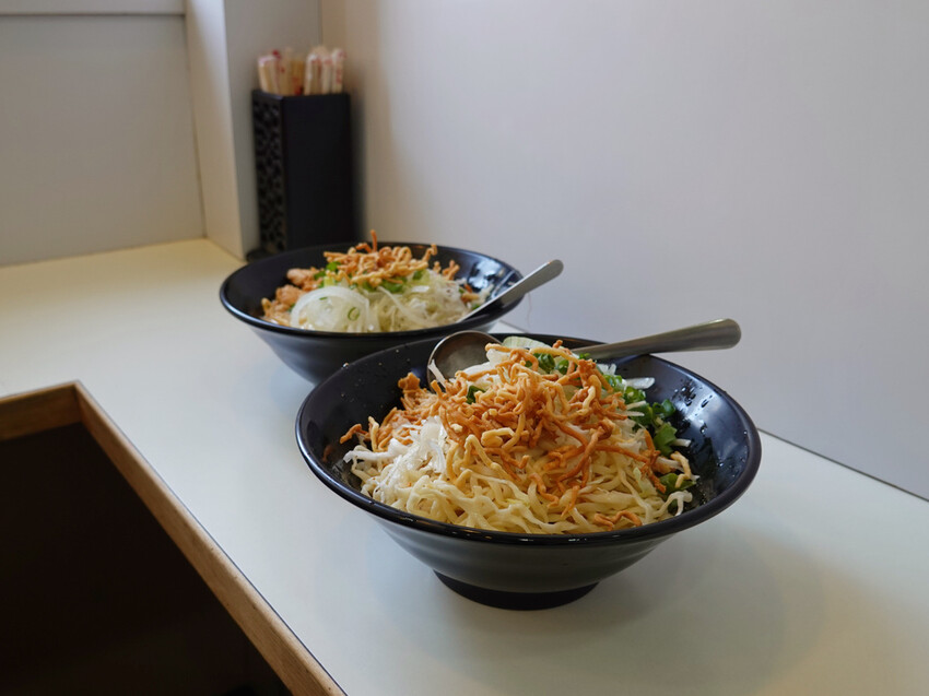 相較於閃麵,我更喜歡椰香雞肉麵多一些,麵體本身是一樣的,差別在於醬汁。「雲香亭」的椰香咖哩醬較印象中來的透明度高,顏色偏綠且質感偏稠,是我以往沒有見過的。