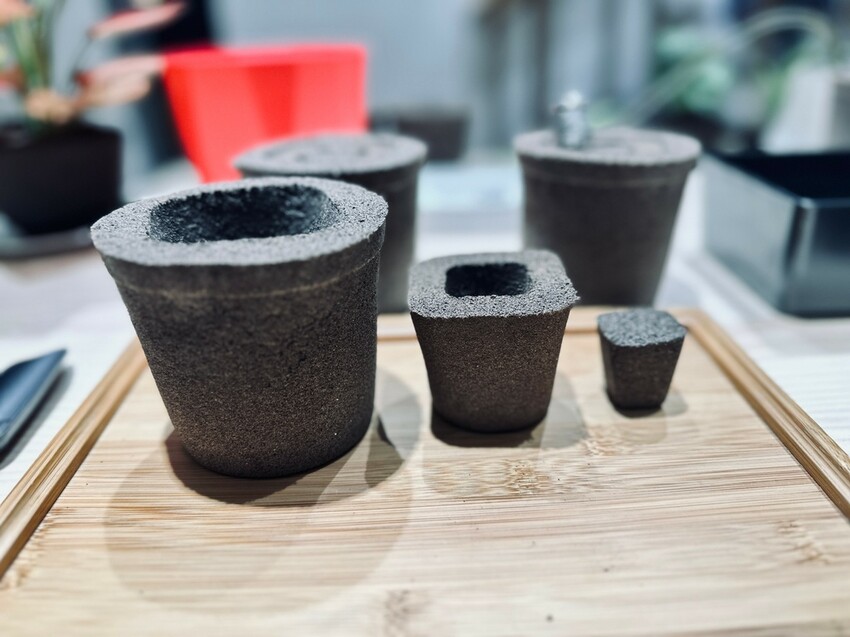 因為店面是八月才開幕,之後會盆栽的種類跟營業項目都會慢慢變的更多,↓這個就是擁有日本SUNTORY專利的無土介質PAFCAL,很神奇,摸起來有點像PU泡綿的感覺,澆水後會逐漸將水份傳送到每個部位,不會像傳統土壤一樣只集中濕一塊,空氣與水的黃金比例,讓植物的根部不易腐壞,讓植物好照顧又可以活的很久,重要的是不易產生蚊蠅
