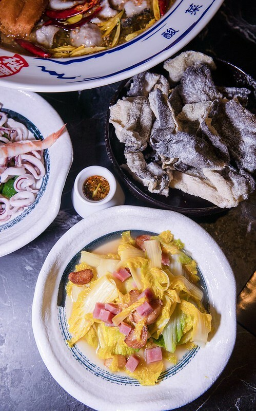 白肉吃起來像在吃酸菜白肉鍋,是我喜歡的那種,肉嫩微微軟肥,特別適合又酸又辣的湯汁。其他的配料蠻多的,如木耳、金針菇、手工丸、腐竹、油條等,有一半像在吃火鍋,挑著、撥著、找著倒也是另一種樂趣。