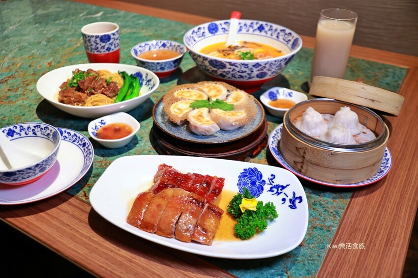 全澳首推的養生招牌麵系列,我們點了鮮味煎鍋貼、五香牛腩麵、青島對蝦藜麥麵、南翔小籠包、川梨汁、燒味雙品(金牌爐燒鴨、蜜汁叉燒)。