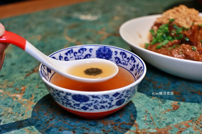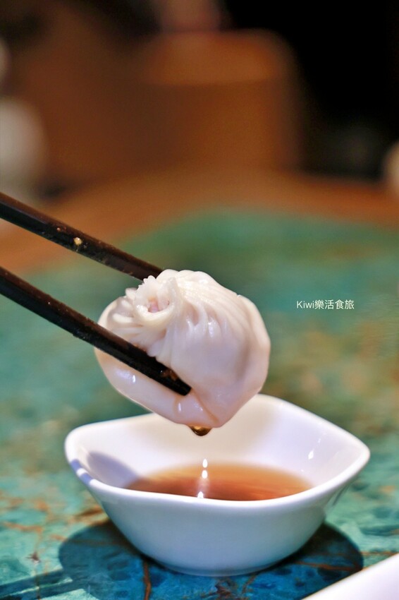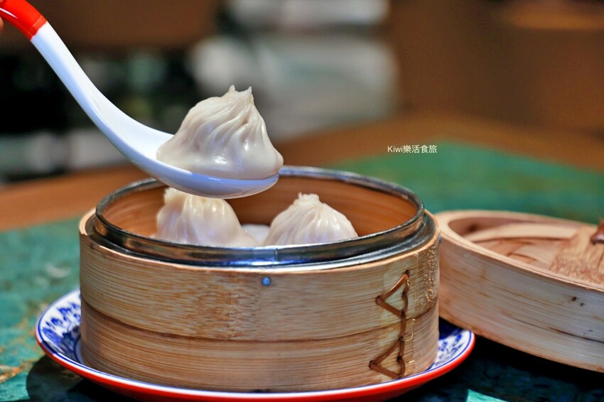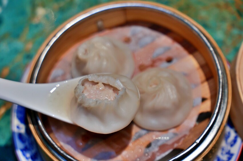 美食要趁熱吃很重要,我們放了一下才吃,拿起湯匙端了一顆南翔小籠包,那上面細緻的摺痕都是現點現包,原以為是自己不喜歡的冷皮又有厚度,沒想到是薄度有的小籠包。
