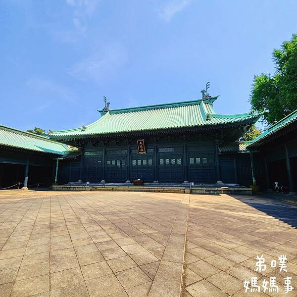 「湯島聖堂」是原本不在我計畫內的景點,雖然台灣也有孔廟,也是推薦大家要去神田明神也能路過進來走一走,一側角落還有小小遊戲場。湯島聖堂的孔廟就外觀色系和台灣常見的紅色不同外,整個空間都被大樹所包圍,而這也是我們會停留這裡的原因,因為7月的日本真的好熱,在聖橋看完火車的大人小孩要再走去神田明神都有點熱昏了。