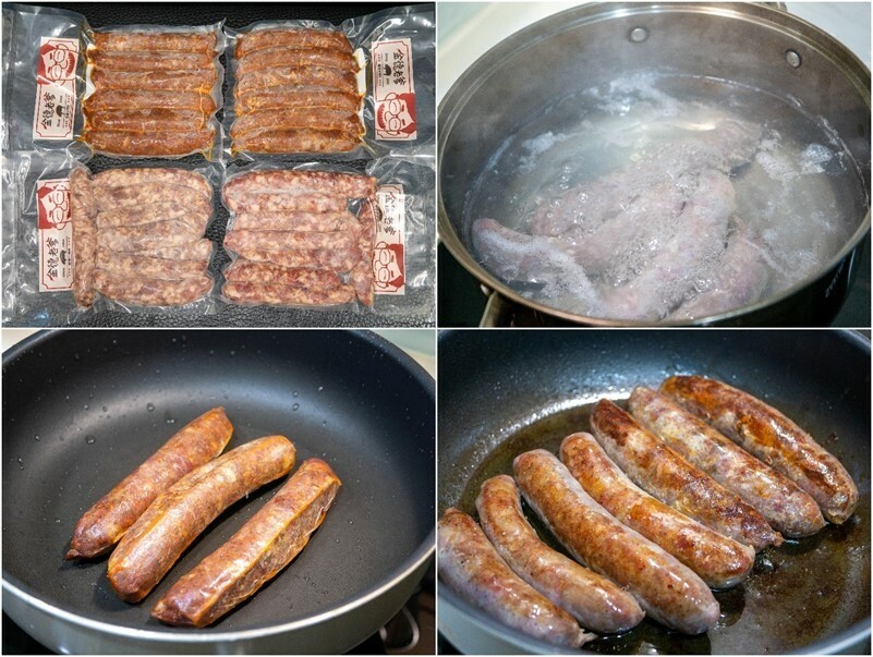 香腸可以直接乾煎,或水煮/電鍋蒸後再煎加快熟度,也可以作為烤肉的食材,多樣的料理方式可以呈現不一樣的口感