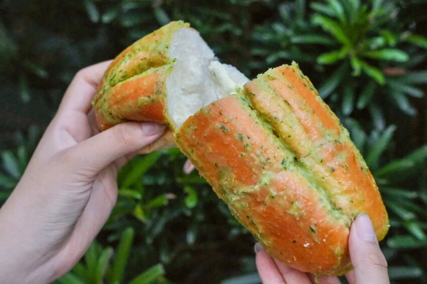 ▼喜歡鹹麵包則推薦香蒜乳酪哈斯,還沒吃就聞到超明顯的蒜味,吃起來鬆鬆軟軟,滑順的奶油乳酪餡好濃好香!