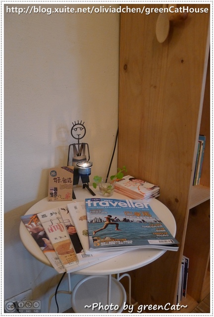 書櫃旁還會有一張小桌子,上面擺著的是Meili推薦的好雜誌。
