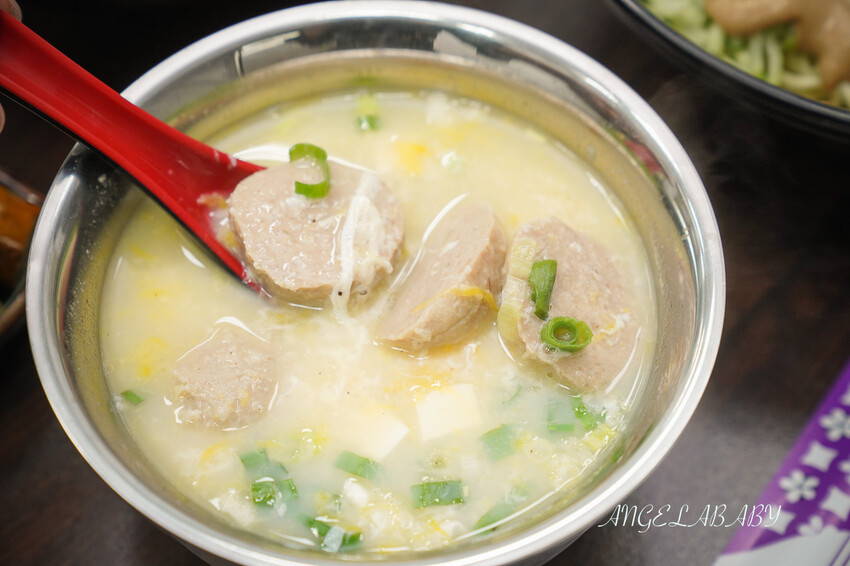 點涼麵標配的味噌貢丸蛋花湯,味噌的鹹香適中蛋花真的是完整的一顆雞蛋,貢丸有兩顆切半