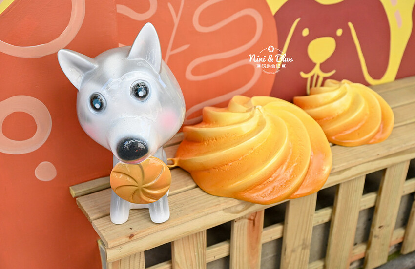 有著4隻立體狗狗公仔,以及可以拿起來拍照的大型曲奇餅乾
