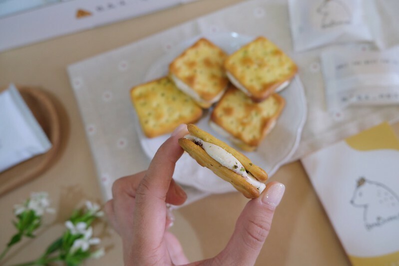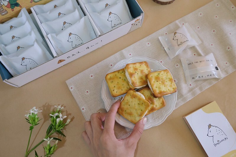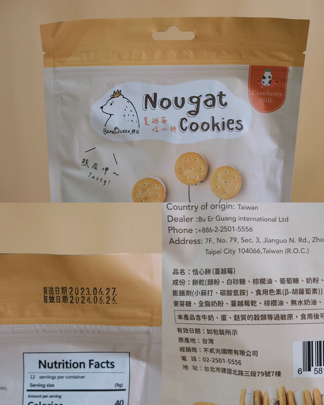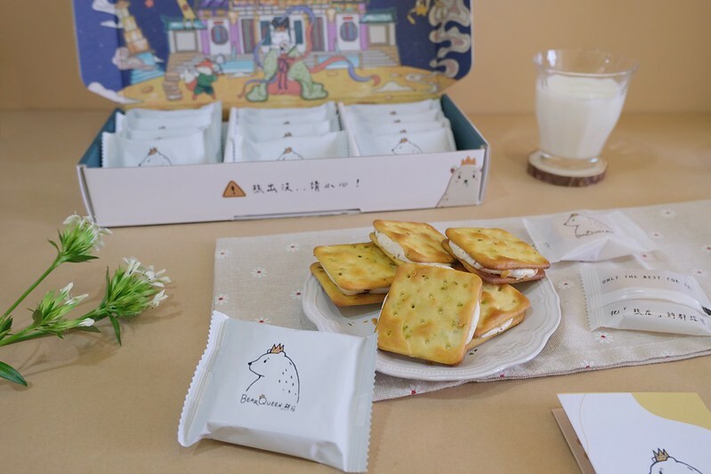 「Bear Queen 熊后」的牛奶莓莓-香蔥蘇打牛軋餅,可不是一般的牛軋餅乾哦,是用心製作的手工職人之作!以烘焙的方式一點一滴地製成,每一片都代表著熊后的用心和專業。而且,它的內餡真的是超級加倍,讓口感更加濃郁!內餡還是用紐西蘭奶粉製成,讓口感提升了好幾個檔次呢!