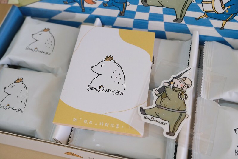 打開內盒,同樣有附上產品折頁DM和Q版的「熊后」插畫貼紙,不過貼紙跟剛剛的中秋禮盒可是不一樣,為了配合中正紀念堂版的禮盒,特別設計一款衛兵圖案的貼紙,超級萌!
