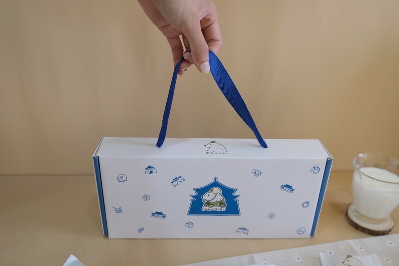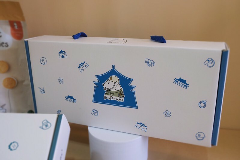 文青質感大方的手提外盒,以藍白色的包裝和Q版的「熊后」呈現,萌趣的外型設計相當討喜,另外還將中正紀念堂融入插畫中,可愛又創新!