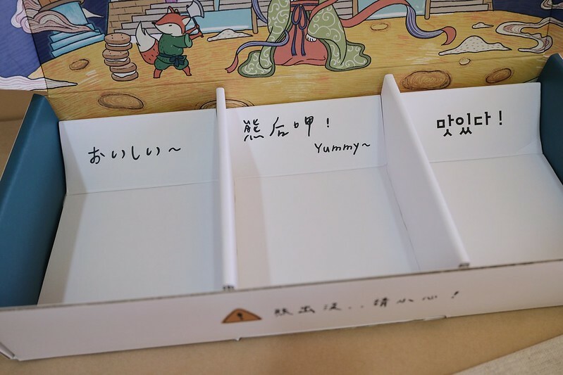 吃完12片牛軋餅,你會發現包裝盒上竟還藏著驚喜,分別是日文、中文和韓文的好吃意思,有一種吃完再來一盒的趣味性,非常有意思。