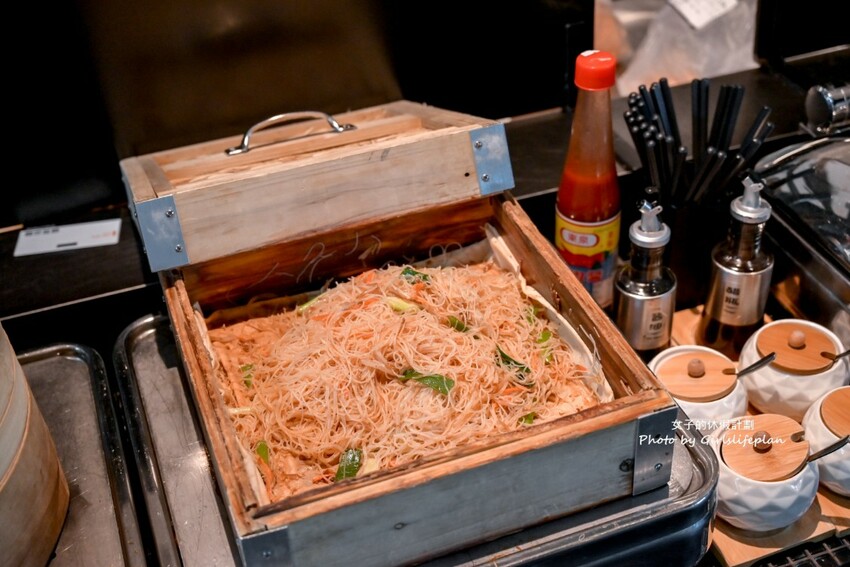 炒米粉有準備台中在地必吃的東泉辣椒醬,加上這一味真的太好吃了,還有高麗菜、火腿腸、炒蛋、煎蛋。