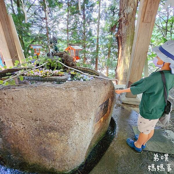 手水舍沒有一般神社看到的木勺搖水,直接有龍泉沿著管子流下(就真的很像一般洗手方式...)
