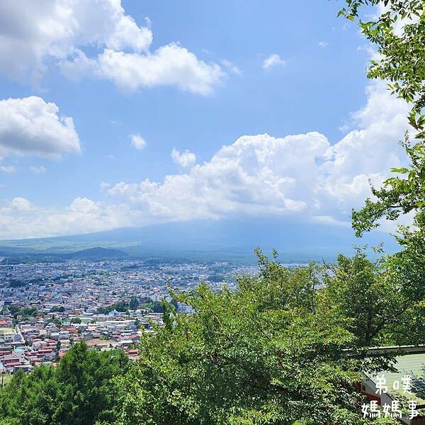 那片美景就出現了,拍到五重塔和富士山的明信片美景,真的好美。走得好累,但一定要上來看看!!