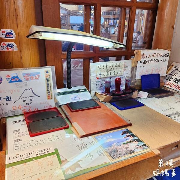 這次KKDay行程的最後一站是五合目,是富士斯巴魯線終點,我們到訪時間是開放登山的時間(疫情過後開山時間建議依官網公布為主喔!),所以遇到許多爬富士山的登山客。領隊說這裡是爬富士山很重要的補給站,只要爬富士山都會來這裡。停留時間很短,但要做的事情就是到郵局寄張用"富士山山上木頭做的"明信片、買"富士山上木頭做的"登山杖、到富士山小御嶽神社走走和一旁的購物店逛逛。("富士山上木頭做的"是購物關鍵字,不過我沒買登山杖
