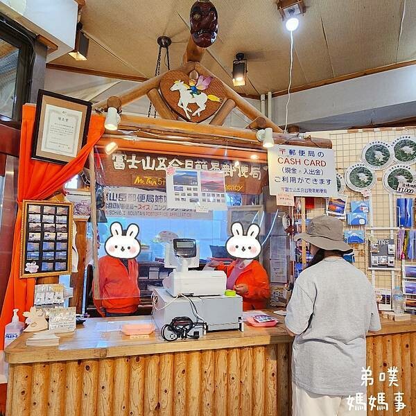 郵局人員很親切,這邊是簡易郵便局,就一個小窗口,上方還有天狗像。除了富士山上木頭做的明信片外,還有一般的明信片