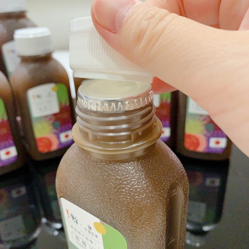 看到烏梅汁的瓶蓋上方有個斜角切角設計沒?這神奇設計真的很讚喔!(往下看就知道了)