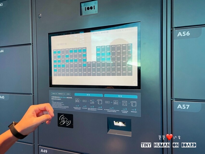 🔽 燈箱後方就是一整排的(免付費)置物櫃。只要不按到『離場』,置物櫃可無限次數使用。