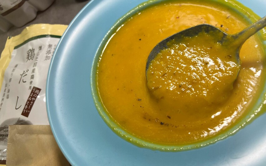 雞高湯包,是使用煙燻過後的日本國產雞肉乾製成,並添加少許的醬油和海鹽,這次我拿來加在南瓜濃湯裡,超級好喝的🎃,他們的高湯包可以破袋直接加在料理中,也可以選擇滾水加熱熬,非常方便❤️
