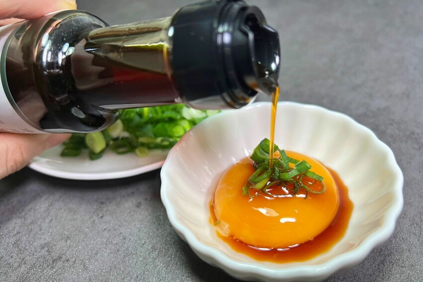 再來還有一款是雞蛋拌飯專用醬汁,是採用日本國產大豆與小麥製成,融入柴魚與海帶熬製成的高湯,清甜不死鹹