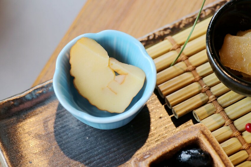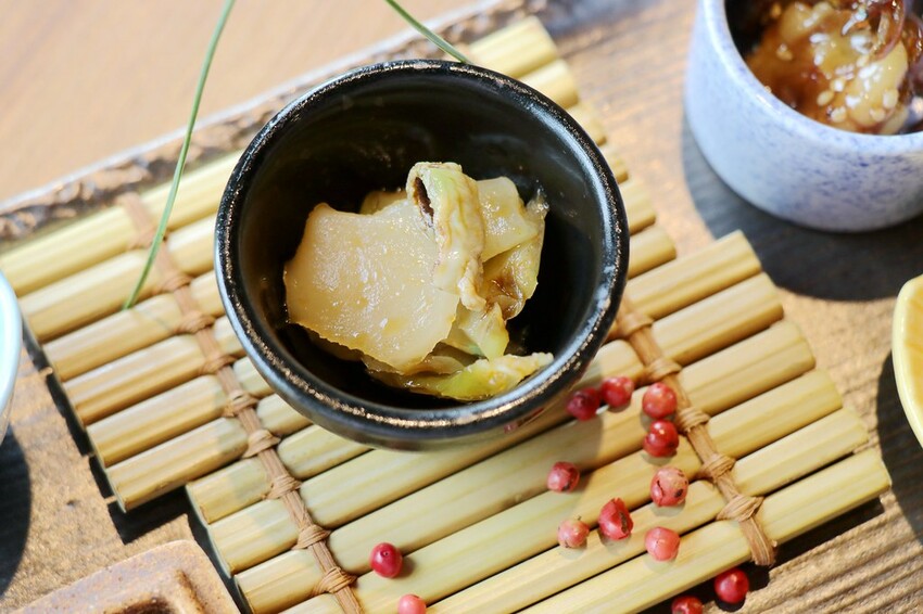 光是擺盤就美到讓人不知從何下手.一旁的蜜地瓜.番茄及紫地瓜都是手工醃漬