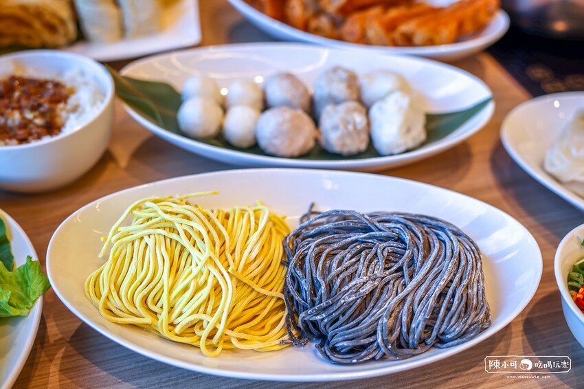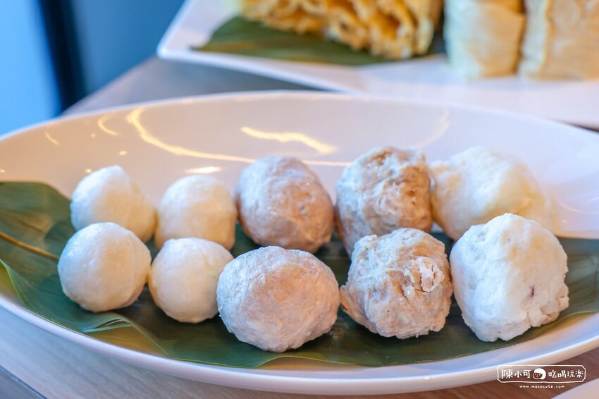 男友吃火鍋很愛搭配的丸子,拼盤鱈魚丸、新竹貢丸、花枝丸和芋頭丸有四種,我特別喜歡芋頭丸,吃得到芋頭顆粒,軟綿鹹香,口感實在。
