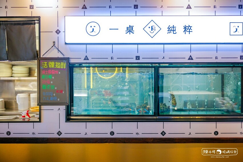 走進店內先看到「汆食作伙鍋」的LOGO,旁邊醒目的大水族箱就是活跳跳的海鮮。
