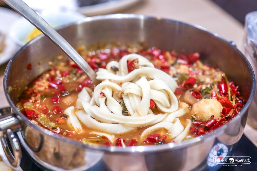 麻辣鹹度剛好,也不會太辣,加上手工麵條Q彈又滑口,掛湯功力也不錯,煮完一口接一口,非常涮嘴,雖然前面份量已經很有飽足,但這麵條煮完又把胃口打開了!
