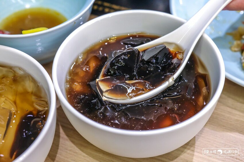 餐後甜點也是自助無限,當天吃到愛玉和仙草,旁邊還可以依照自己喜好添加檸檬水和紅糖水。