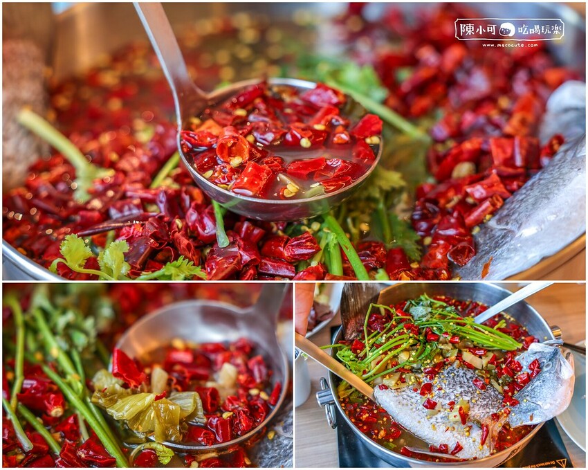 麻辣魚先以辣椒、薑和秘方炒過,讓香氣散發出來,接著加入牛骨湯和許多酸菜熬製,湯底有著酸、香、辣的美味兼具。