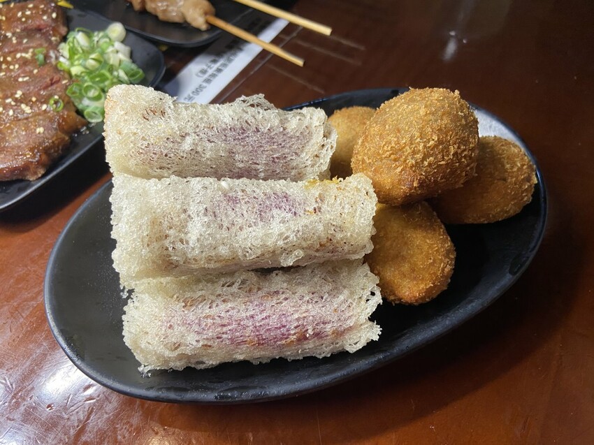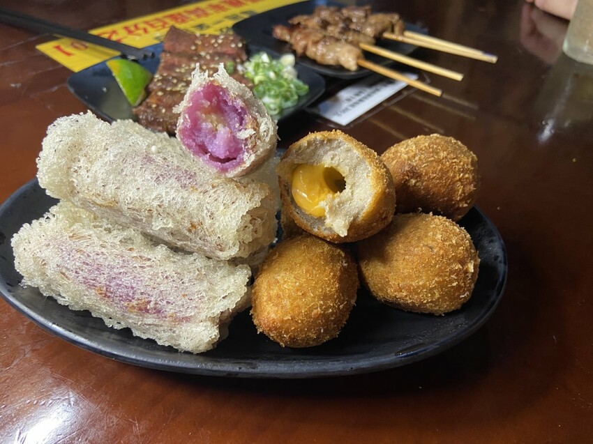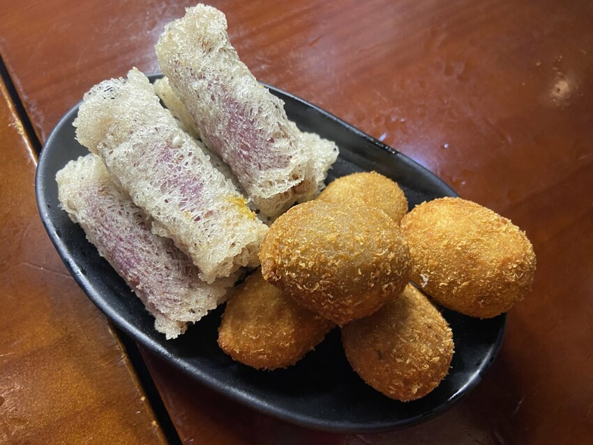 山藥捲,外皮酥酥脆脆,裡面滿滿山藥泥,口感軟綿又香甜。