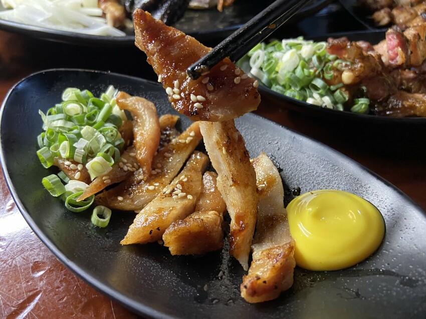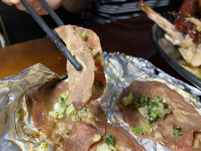 朋友每次來必點的鹽蔥牛舌,確實好好吃,Q中帶脆,烤的熟度恰恰好,搭配特製鹽蔥,讓人越吃越過癮。