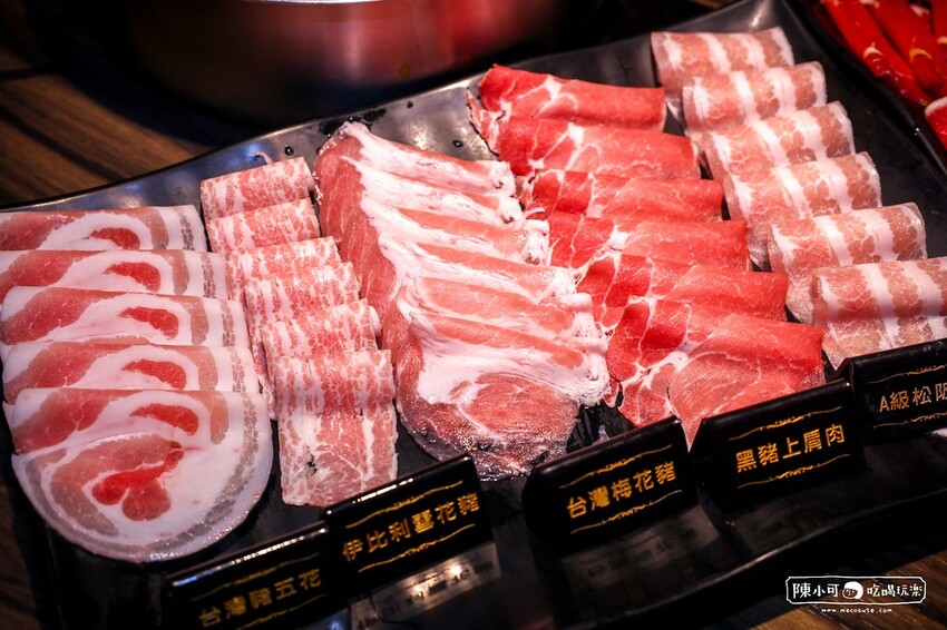 不吃牛的人也有其他肉品可以選擇,豬肉的種類也非常多,像我愛吃的A級松阪豬跟台灣豬五花這裡都有,伊比利雪花豬則是升級尊榮消費才有。