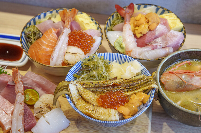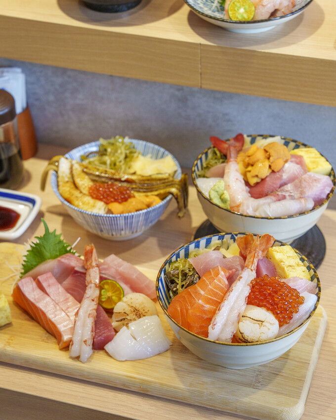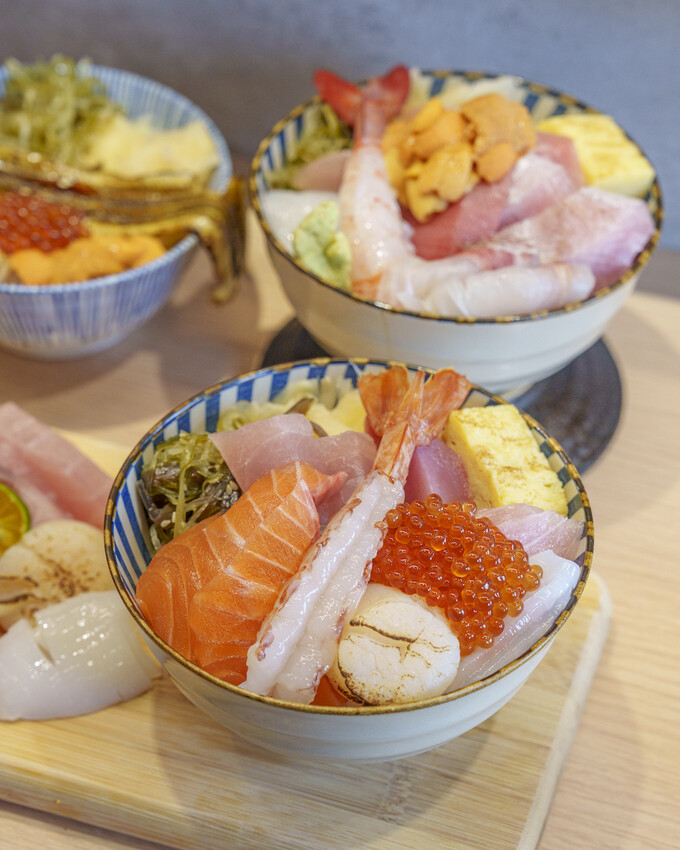 好料上桌了!像寶石一般閃耀著光澤的生魚片丼飯們,每碗都有超豐盛配料,是會讓味蕾融化的大海美味啊!
