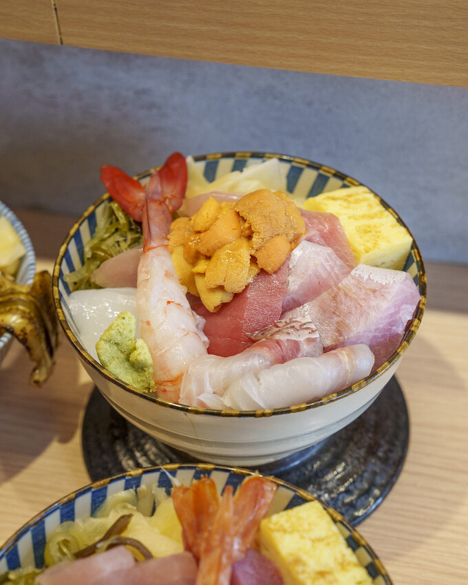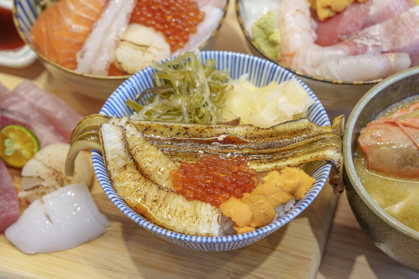 菜單的部分選擇沒有太多,但仔細看了一下,每款丼飯都包含了好多大海滋味在裡面。不管是鮭魚肚、星鰻、干貝、鮭魚卵、海膽等等,想吃的通通都點得到。