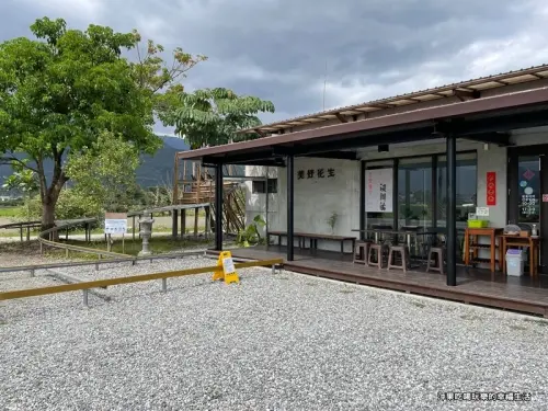 今天介紹的『美好花生』就位於寬廣的田野間,是一家風格清新的小店,外觀是灰色低調的簡約建築,距離鳳林火車站約5~6分鐘車程,沿著46號鄉道旁開車過來,景色優美視野遼闊,這裡附有停車位相當方便,當天的氣候不是很好所以灰濛濛的,如果晴天到訪,藍天白雲綠田相襯真的如詩如畫般美麗。下車後輕輕呼吸一口,這就是花蓮的空氣呀!! 如此新鮮美好~