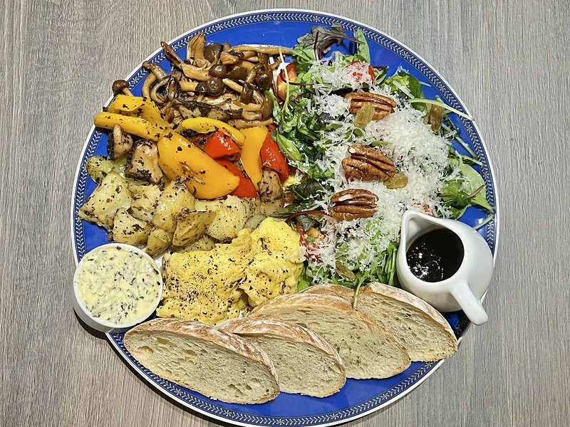 (貝比光合生菜、自製初榨橄欖油醋醬、美式炒蛋、香料烤馬鈴薯、煙燻鴻禧菇、白神惠比壽香料歐包、香料奶油)