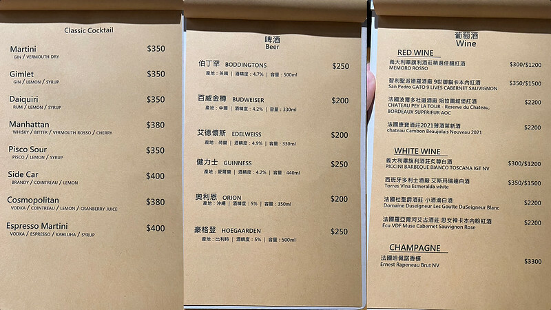 凨餐酒酒單(喝酒不開車!未成年請勿飲酒)