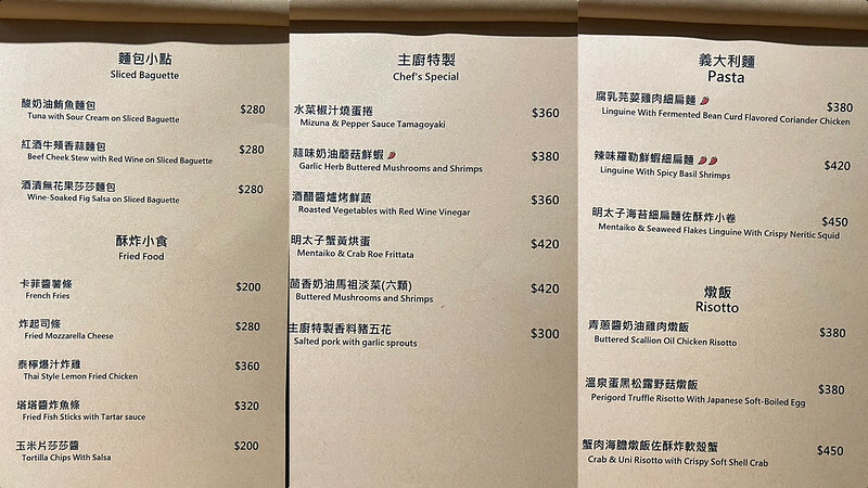 凨餐酒菜單分成黑色的菜單跟白色的酒單,菜單不定期更換,三不五時來都有不同的新選擇,讓人想常常來報到~~