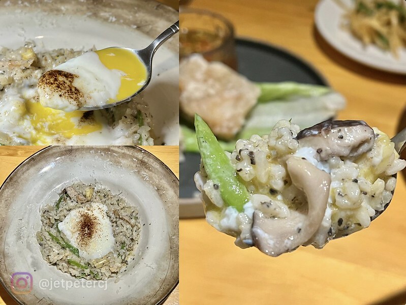 米飯屬於比較有口感的歐式燉飯,吃起來滋味特別好,加上溫泉蛋增添滑嫩的口感,濕潤卻不會軟爛,用料超豐富超有層次感!