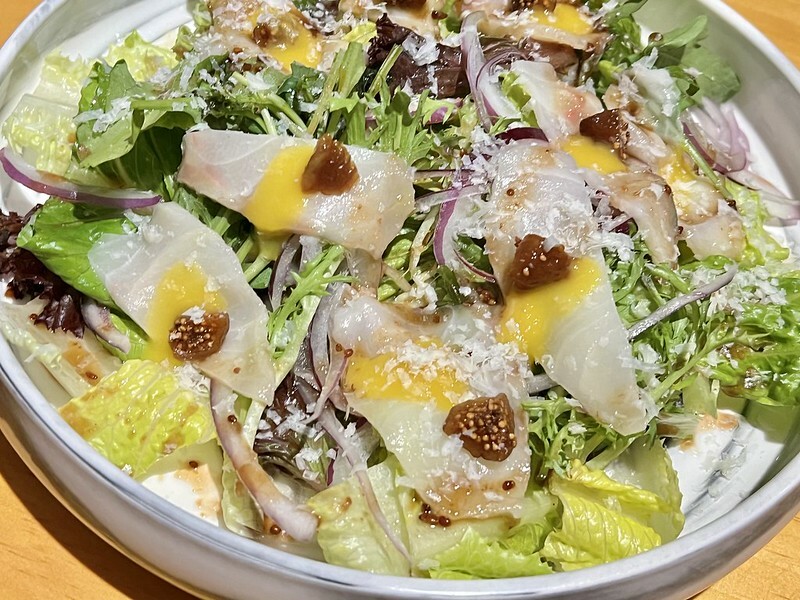 2. 無花果香橙鱘魚沙拉,酸甜開胃非常適合夏天,鱘肉魚肉質有彈性沒有土味,搭配酸甜無花果及新鮮生菜享用,相當清爽的開胃佳餚~多道有特色的料理,還會想要再訪的好店!