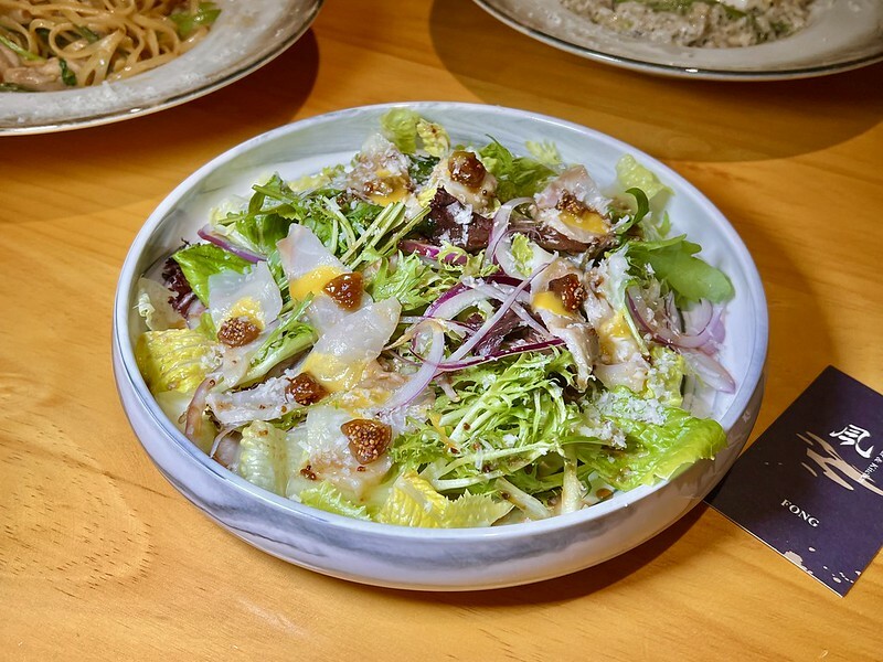 非常開胃的清爽沙拉,居然使用超少見的鱘龍魚,肉質相當有彈性,不會有土味,魚肉口感頗有彈性,搭配清爽沙拉真的好速配~