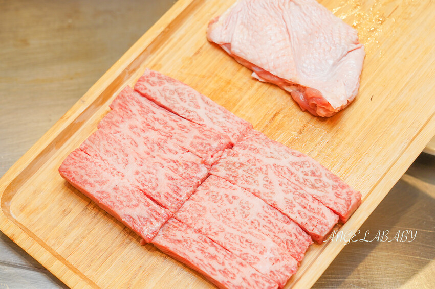 粉嫩的肉色與完美的和牛油花,等級是依照油花分佈均勻度~越細緻就越貴